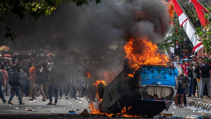 3. Bentrok Pecah: Gas Air Mata, Water Cannon, hingga Pembakaran